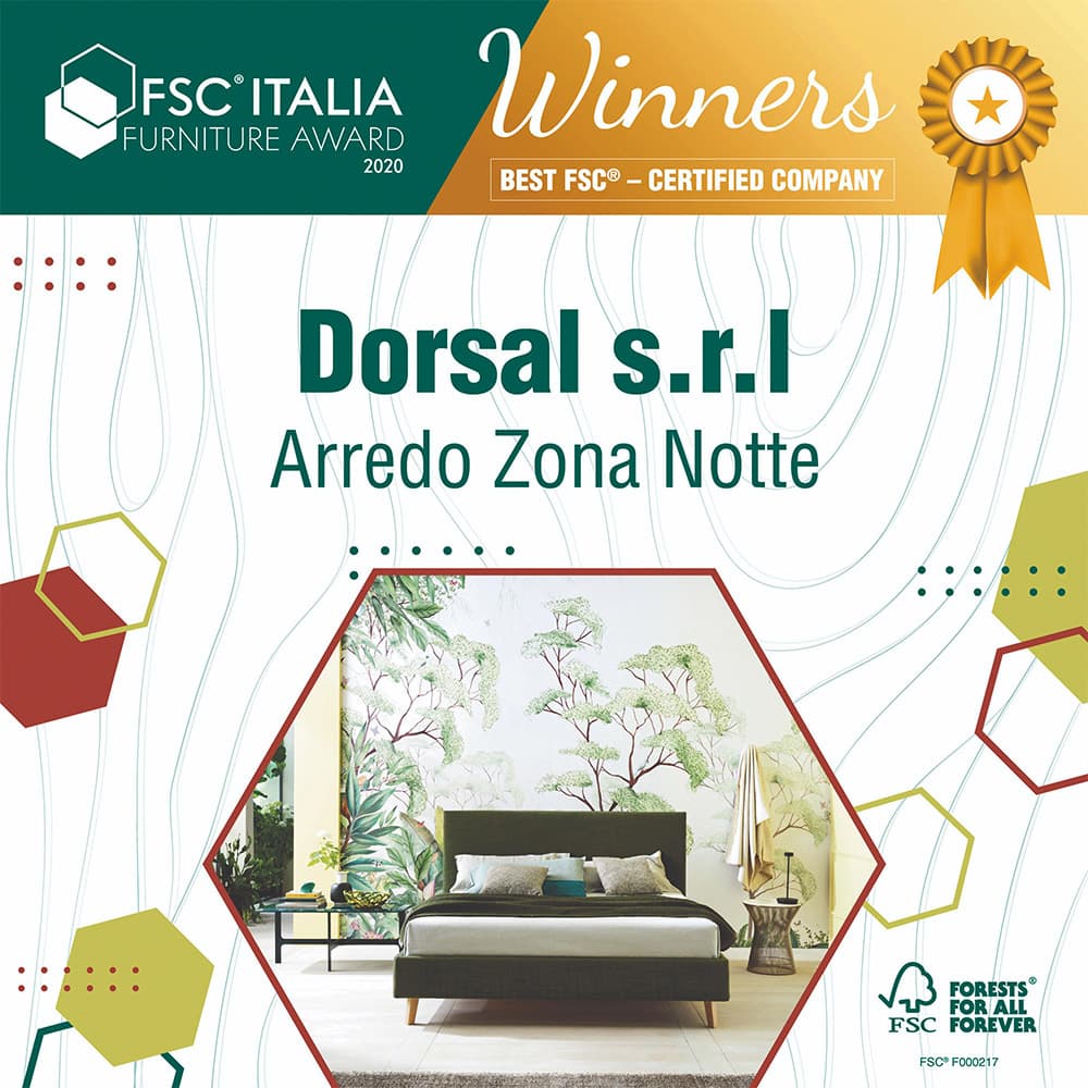 In 2020, Dorsal wins, for the second year running, the FSC® Italia Furniture Award, Night Zone category, a competition dedicated to virtuous Italian companies that use FSC®-certified nolegno with respect for environmental sustainability.