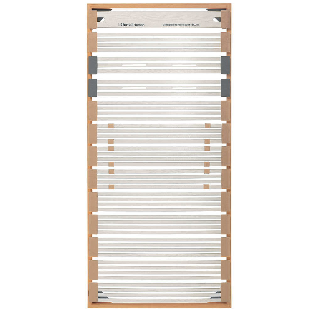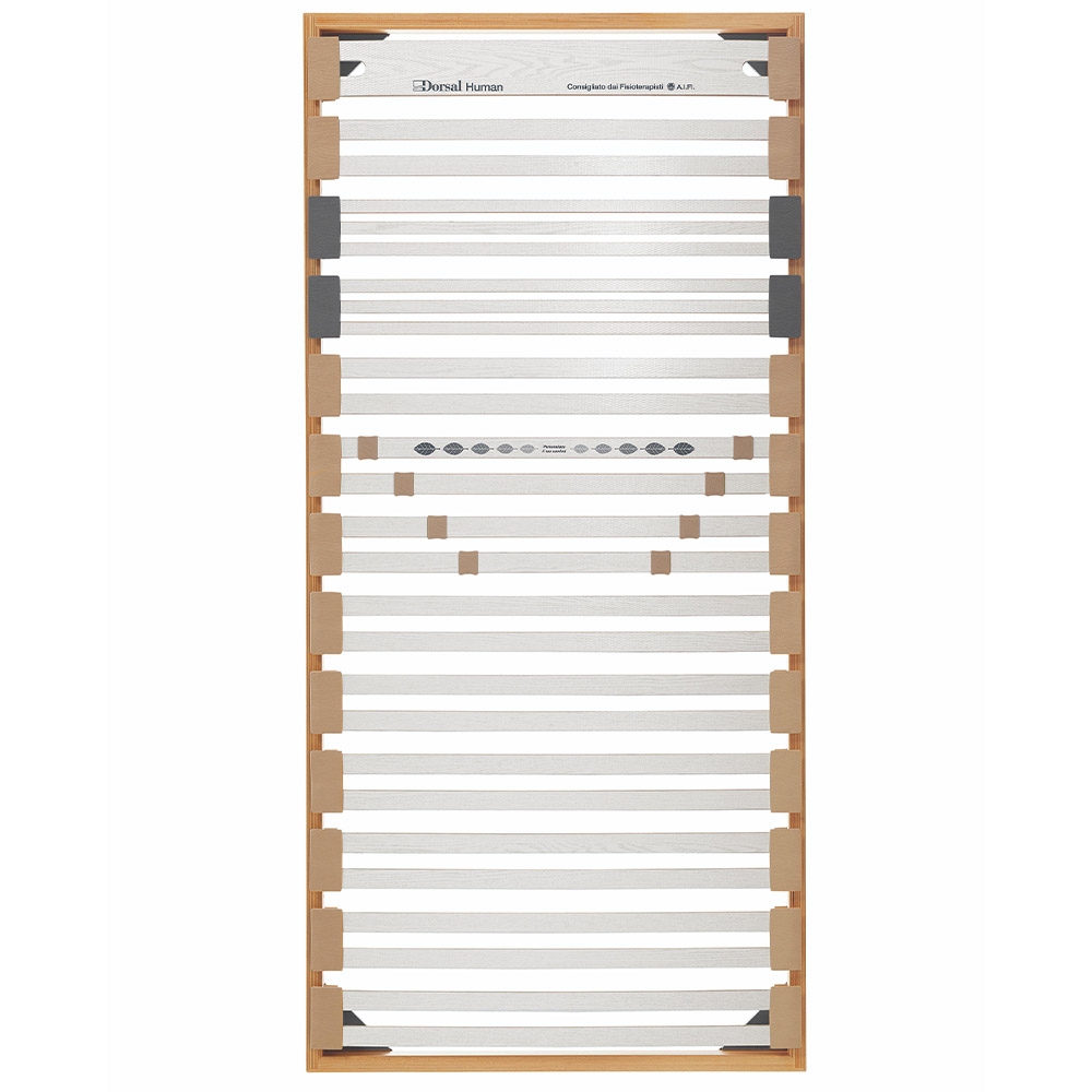 Human, the first line of slatted bed bases that adapts perfectly to different human builds. The models in the line meet different needs, depending on people's weight, morphology and age. IGR Germany certified.