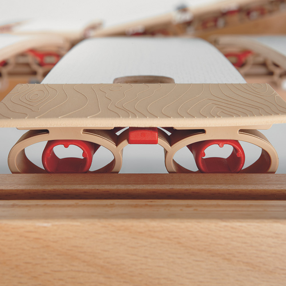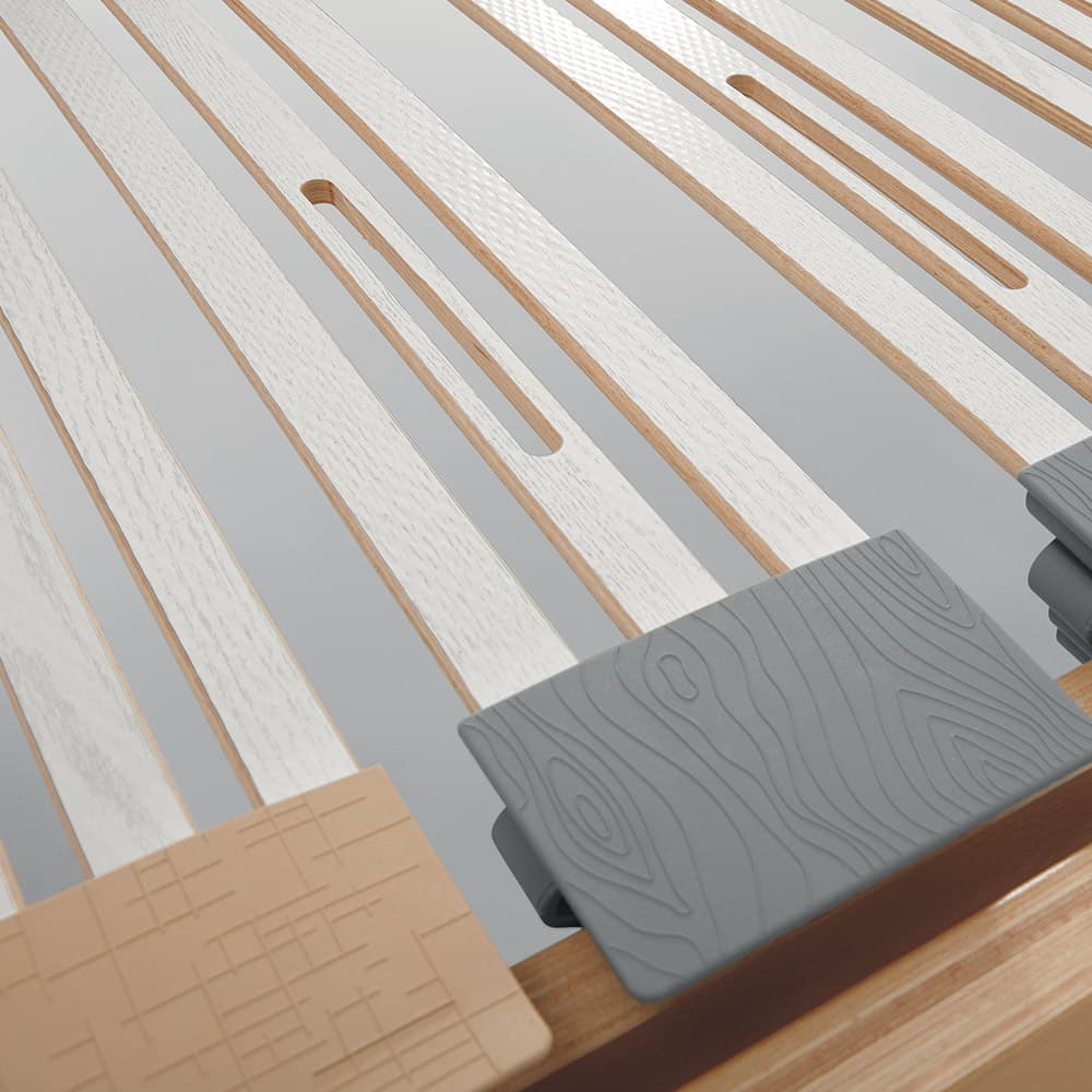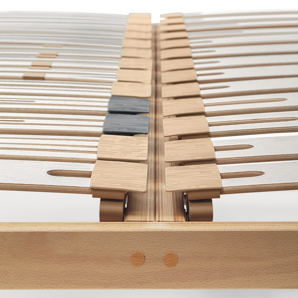 The progressive elasticity of the springing and slat design works in synergy with the mattress.