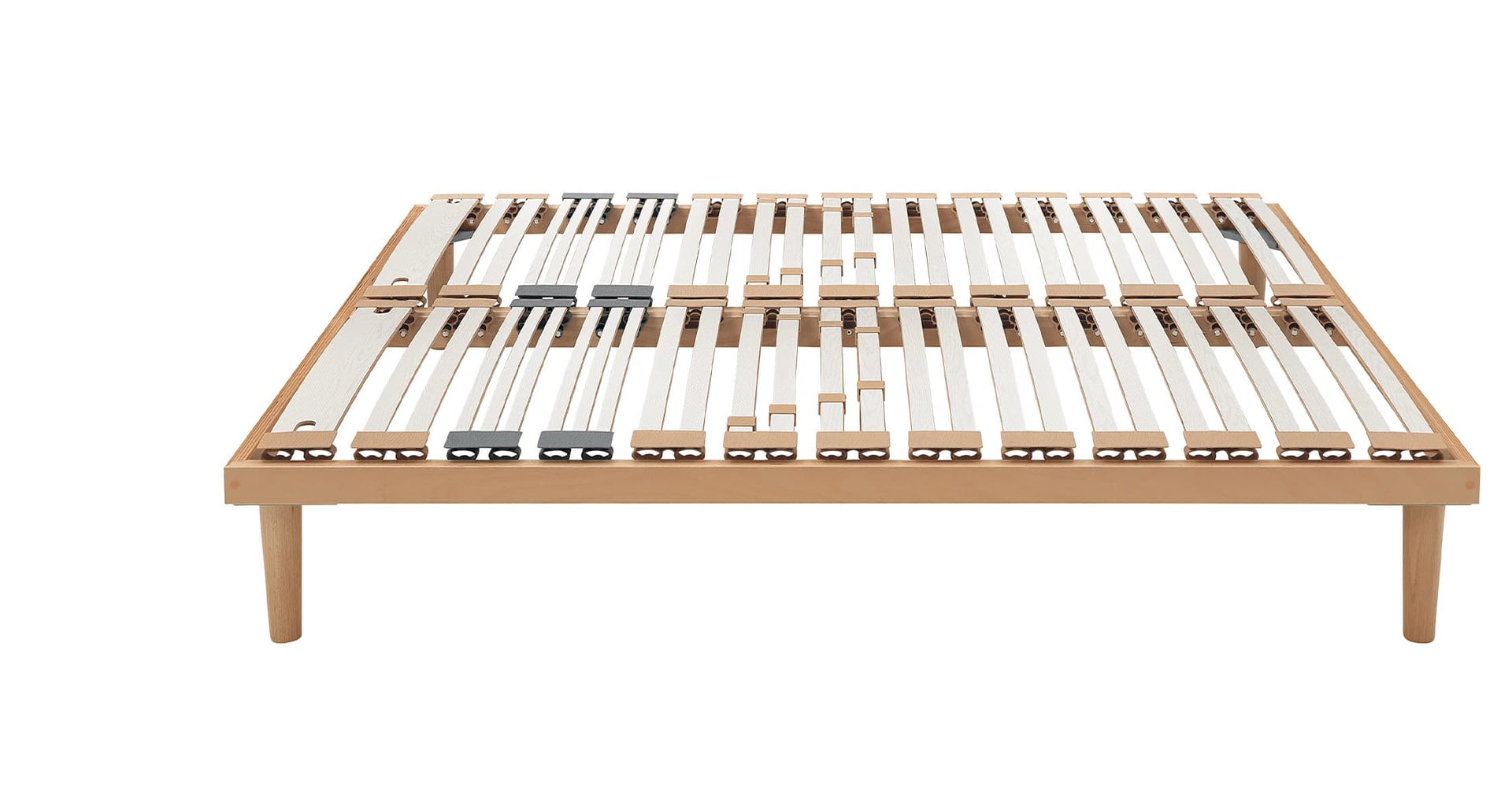 The progressive elasticity of the springing and slat design works in synergy with the mattress.