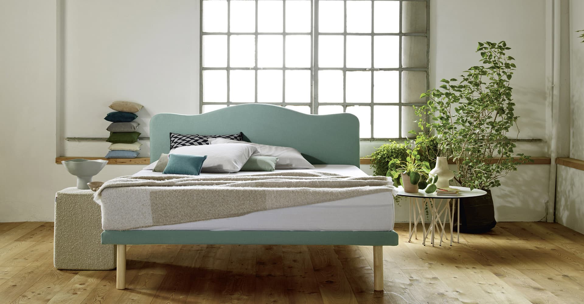 The soft and cosy lines of the classic upholstered headboards fit in with the elegant style for a timeless atmosphere, customisable with relaxing and evocative fabrics and colours.