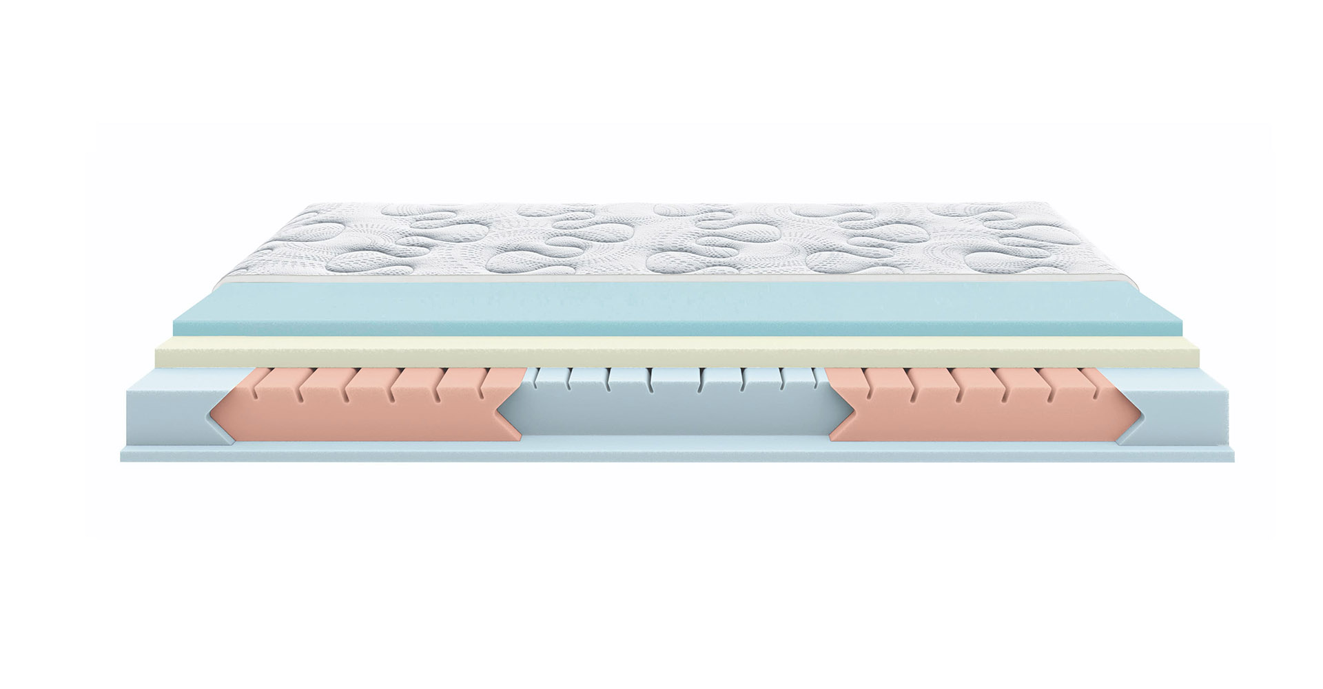 The Gel upper side provides the mattress with freshness and thermoregulation characteristics, which persist throughout the entire rest and comfort phase thanks to the self-molding action of Memory Active. The design of the support layer has been studied to offer differentiated support: with medium accommodation for the delicate shoulder/calf areas and firmer support for the hip area.
