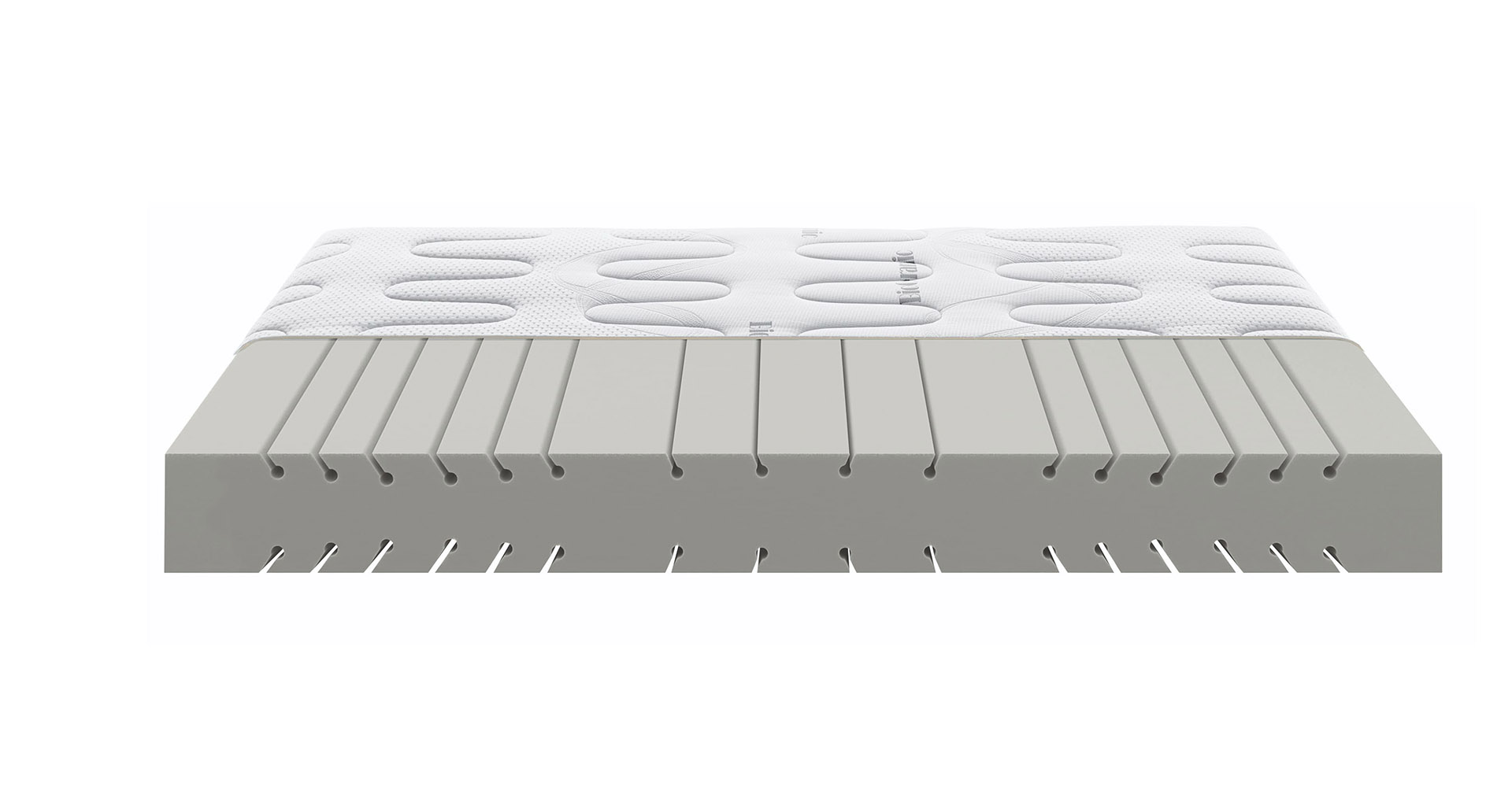 Internal panel molded into seven zones of differentiated accommodation, with stretching workmanship and upper layer in self-molding and thermosensitive viscoelastic. Thus, Fitness Memory accommodates the spine, following its natural curves and allowing the release of tensions accumulated during the day.
