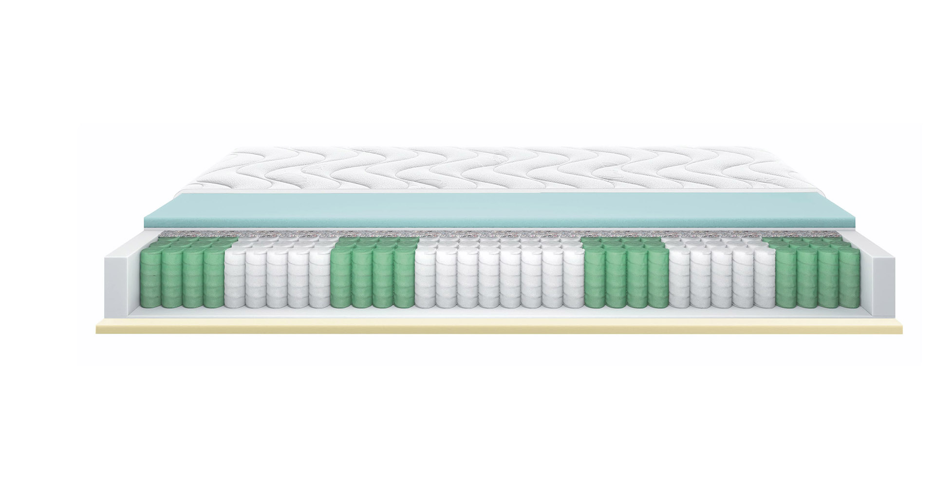 Inside, the independent springs with 7 differentiated zones offer more softness in the shoulder and leg area and more support in the lumbar area for a perfectly anatomical rest.