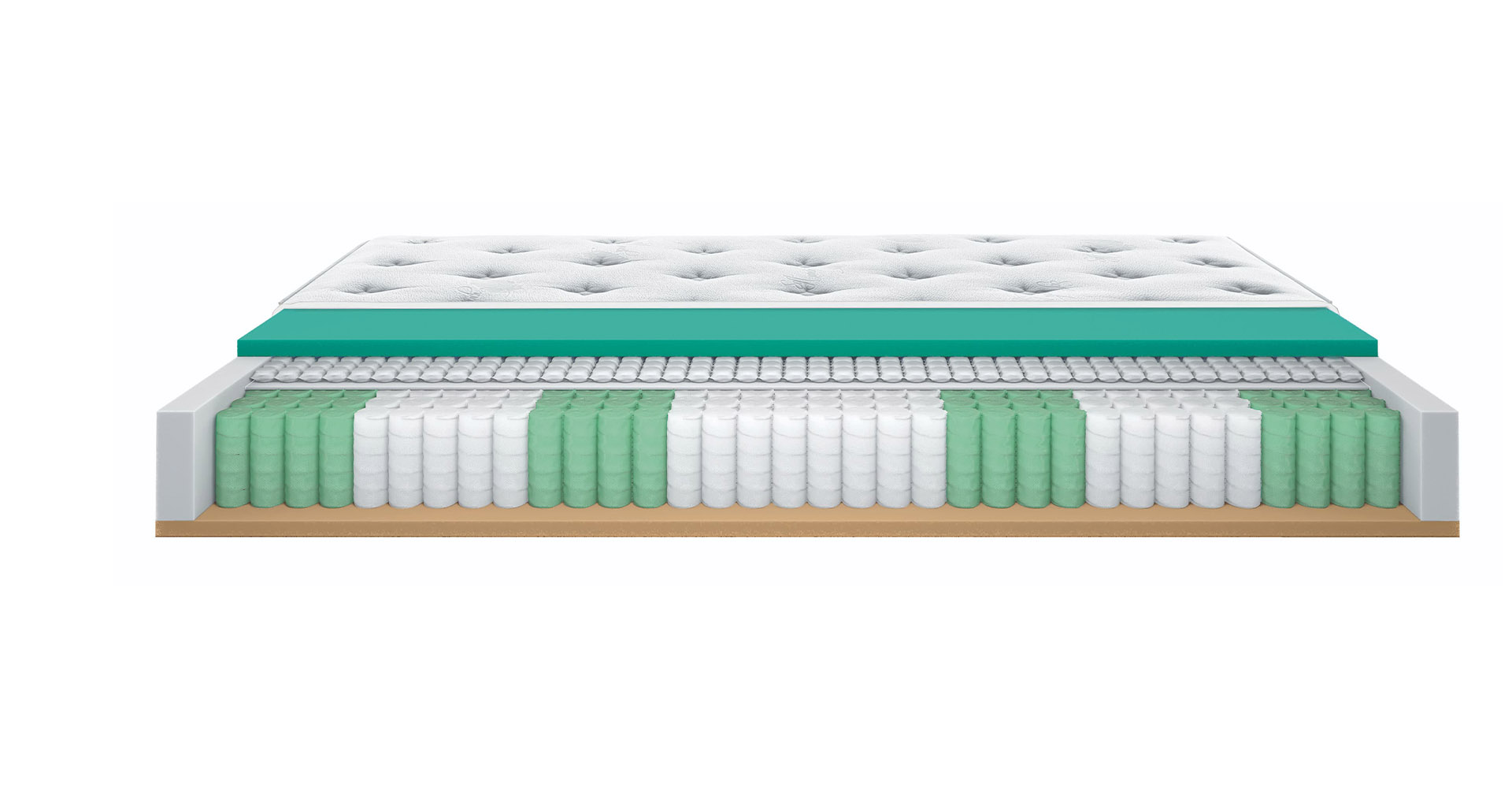 Suite 400 is the mattress with perfect support achieved by a double layer of overlapping pocket springs. The first layer of 2 cm high Micro Springs cradles the body in perfect anatomical comfort. Meanwhile, the second layer consists of 1000 springs divided into 7 zones that provide support in response to different pressures of the body.