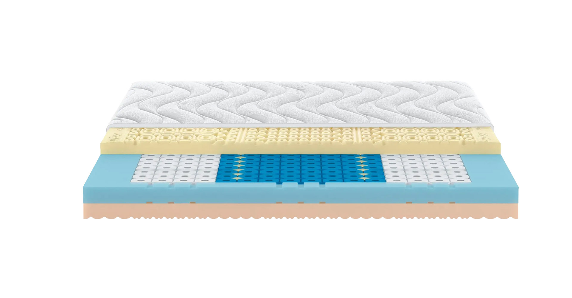 The upper layer in Natur Memory, crafted inlay-style, ensures differentiated accommodation of body zones, for perfect anatomical adaptation and optimal distribution of pressure loads, promoting proper blood and lymphatic circulation.