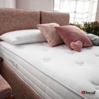 Questa soffice coppia di testiere imbottite reinterpreta il design di due morbidi cuscini. Si abbina all’elegante gonnellina per trasmettere all'ambiente un mood new bon ton e raffinato.